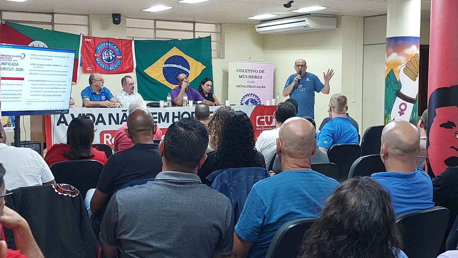 A Federação dos Trabalhadores Metalúrgicos do Rio Grande do Sul (FTM-RS) reuniu dirigentes das entidades filiadas no último dia 25 de março, durante a Plenária Estadual da categoria. A atividade aconteceu no auditório da CUT-RS, em Porto Alegre, e definiu a pauta de reivindicações da Campanha Salarial 2026.